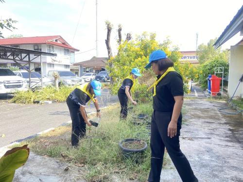 พช.ควนขนุน ร่วมกิจกรรมจิตอาสาบำเพ็ญสาธารณประโขชน์ ปรับภูมิทัศน์ ทำความสะอาด เก็บขยะบริเวณที่ว่าการอำเภอควนขนุน เนื่องในวันข้าราชการพลเรือน ประจำปี 2569