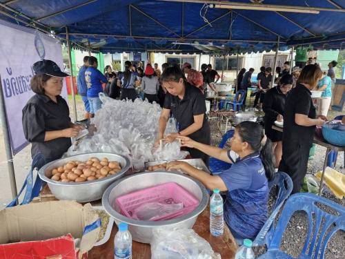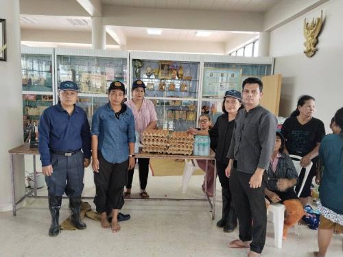 ในการนี้ ได้มอบน้ำดื่มจำนวน 12 โหล และไข่ไก่ จำนวน 10 แผง ให้กับศูนย์ช่วยเหลือผู้ประสบภัยเทศบาลตำบลพนางตุง และร่วมบรรจุถุงยังชีพให้กับผู้ประชาชนที่ได้รับผลกระทบอุทกภัยในพื้นที่
